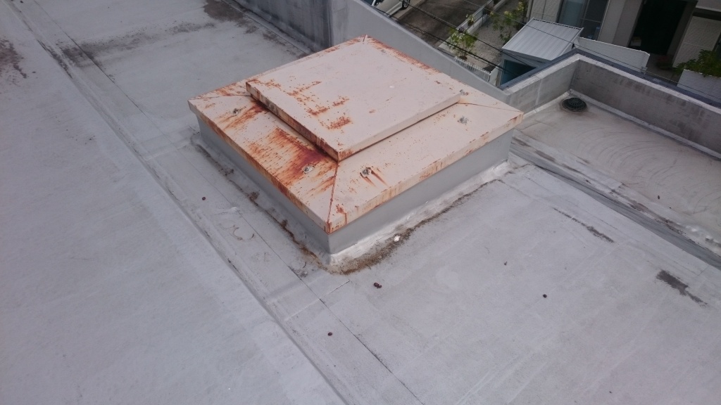 改修工事が必要な時期でしたので、依頼を頂きました。既存防水層はゴムシート防水でした。